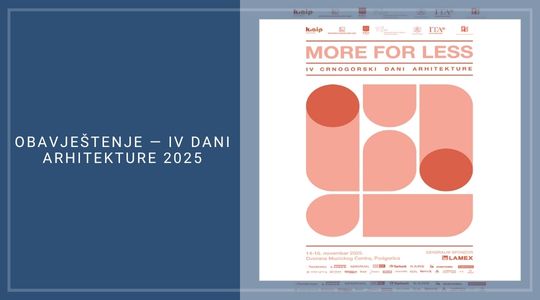 U susret IV Danima arhitekture 2025, obavještavamo sve učesnike da, u slučaju poteškoća sa online uplatom kotizacije, uplatu mogu izvršiti i direktno na račun Inženjerske komore Crne Gore, po istim cijenama koje su navedene na sajtu.